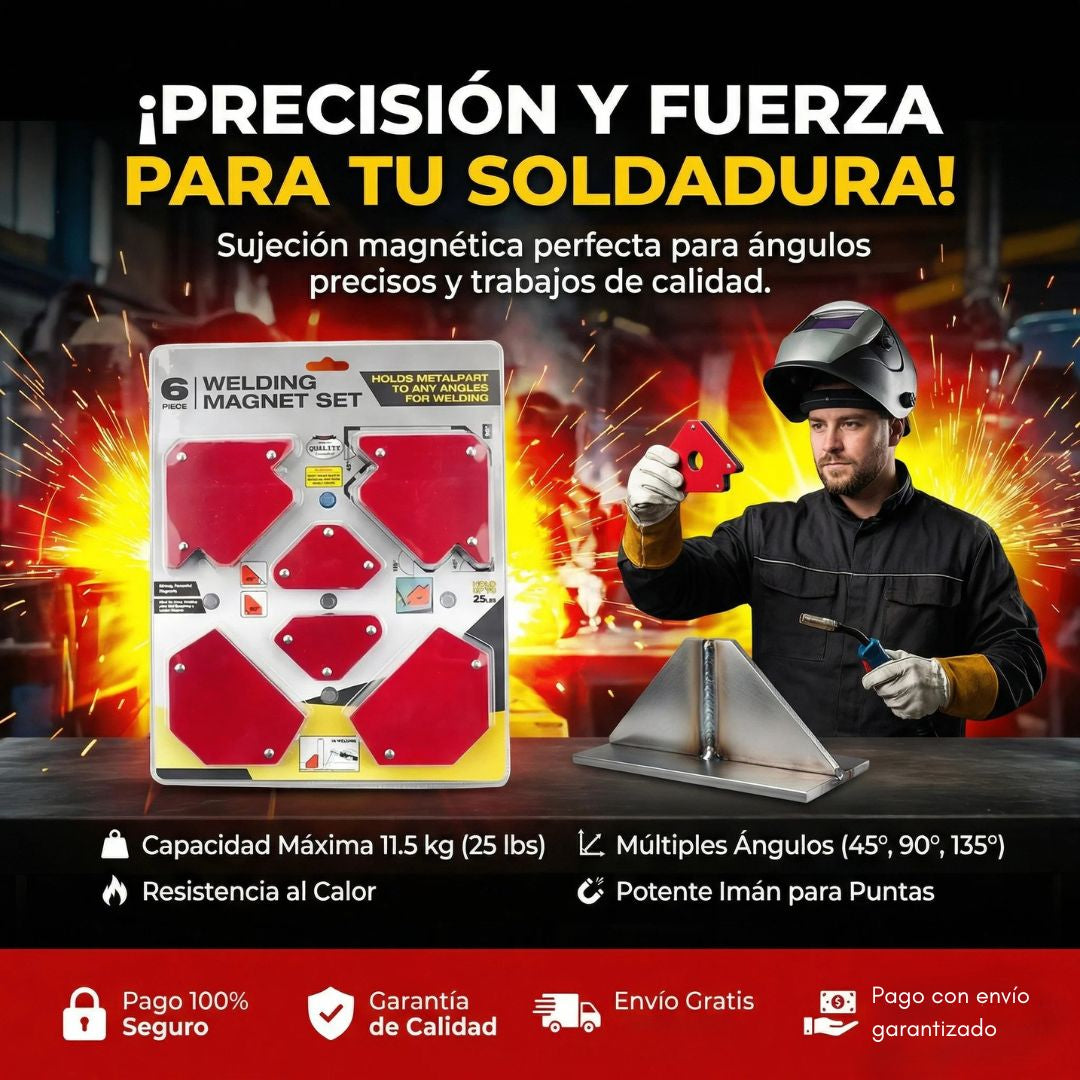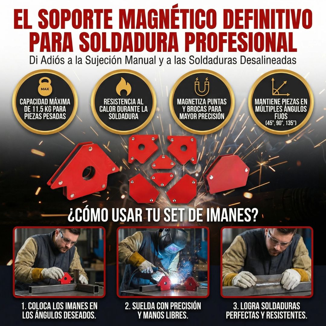 Fuerza de Agarre: Cada imán tiene una capacidad de carga de hasta 11.5 kg (aproximadamente 25 lbs), lo que permite sostener piezas de metal pesadas sin que se muevan.